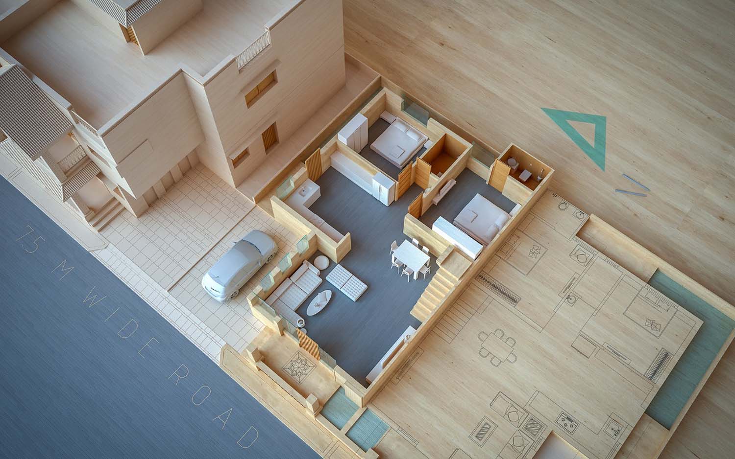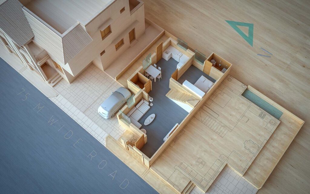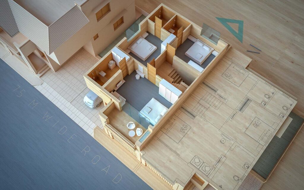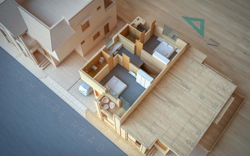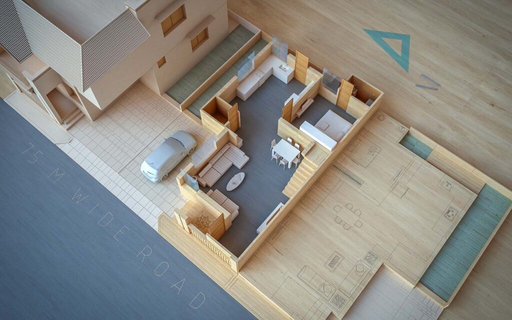 This commercial project near the river and Shamlaji was thoughtfully designed by Shreem Design Architect, with a strong focus on contextual planning, functionality, and architectural clarity. Detailed site research was conducted to understand the surrounding landscape, movement patterns, and environmental conditions before shaping the design approach.
