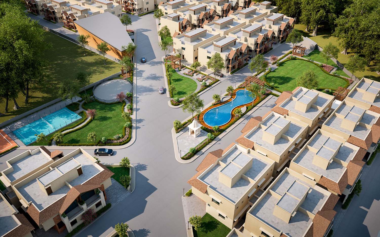 The overall architectural design reflects a contemporary commercial approach rooted in functionality and sustainability. From concept development to execution-ready drawings, this project stands as a complete architectural solution that responds to both business requirements and its natural surroundings.
