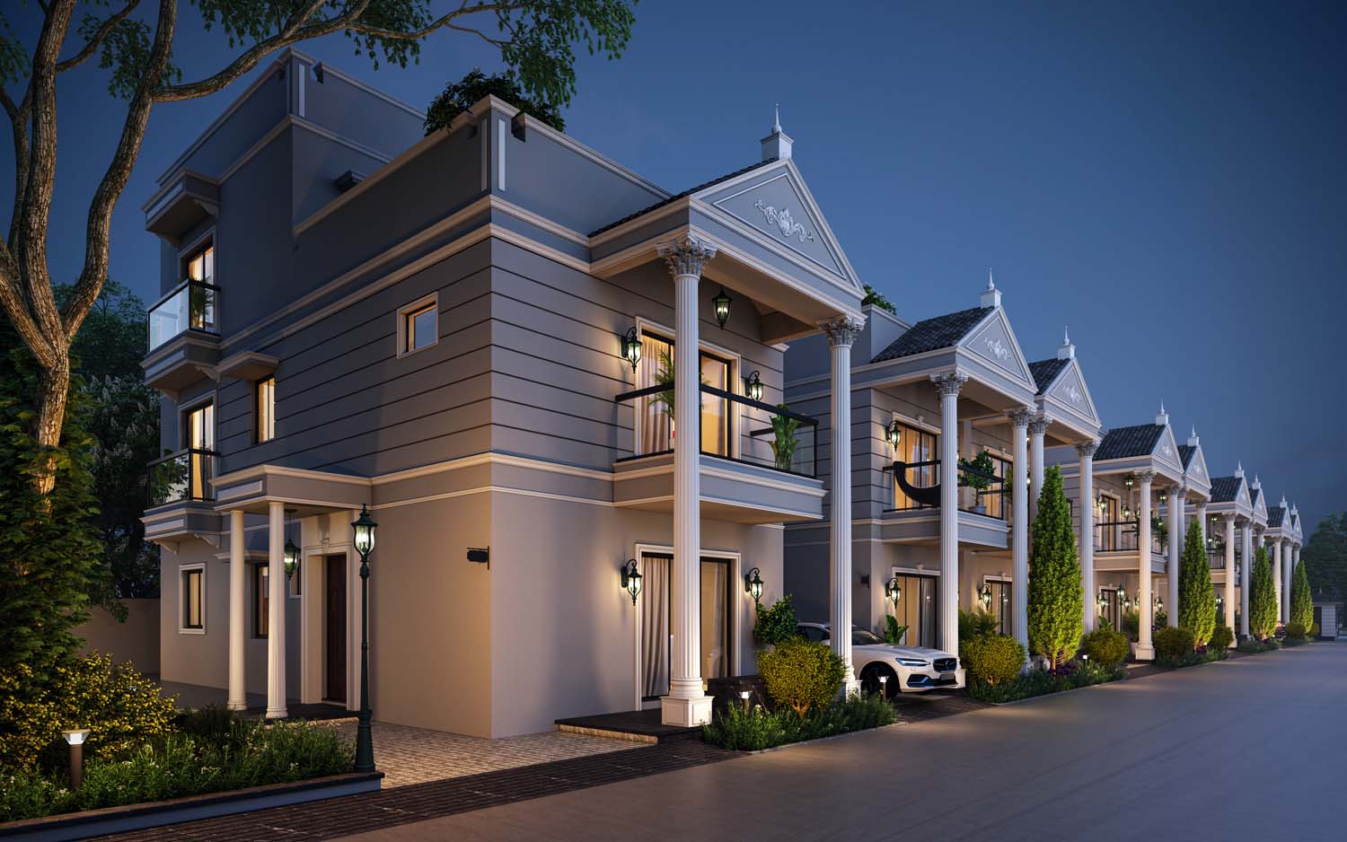 The overall architectural design reflects a contemporary commercial approach rooted in functionality and sustainability. From concept development to execution-ready drawings, this project stands as a complete architectural solution that responds to both business requirements and its natural surroundings.