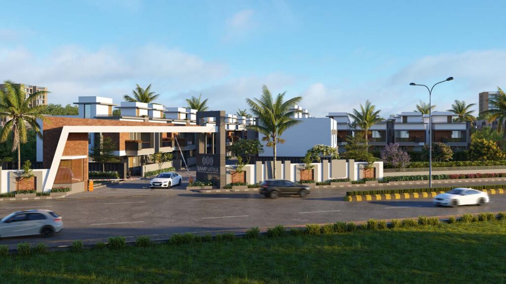 This commercial project near the river and Shamlaji was thoughtfully designed by Shreem Design Architect, with a strong focus on contextual planning, functionality, and architectural clarity. Detailed site research was conducted to understand the surrounding landscape, movement patterns, and environmental conditions before shaping the design approach.