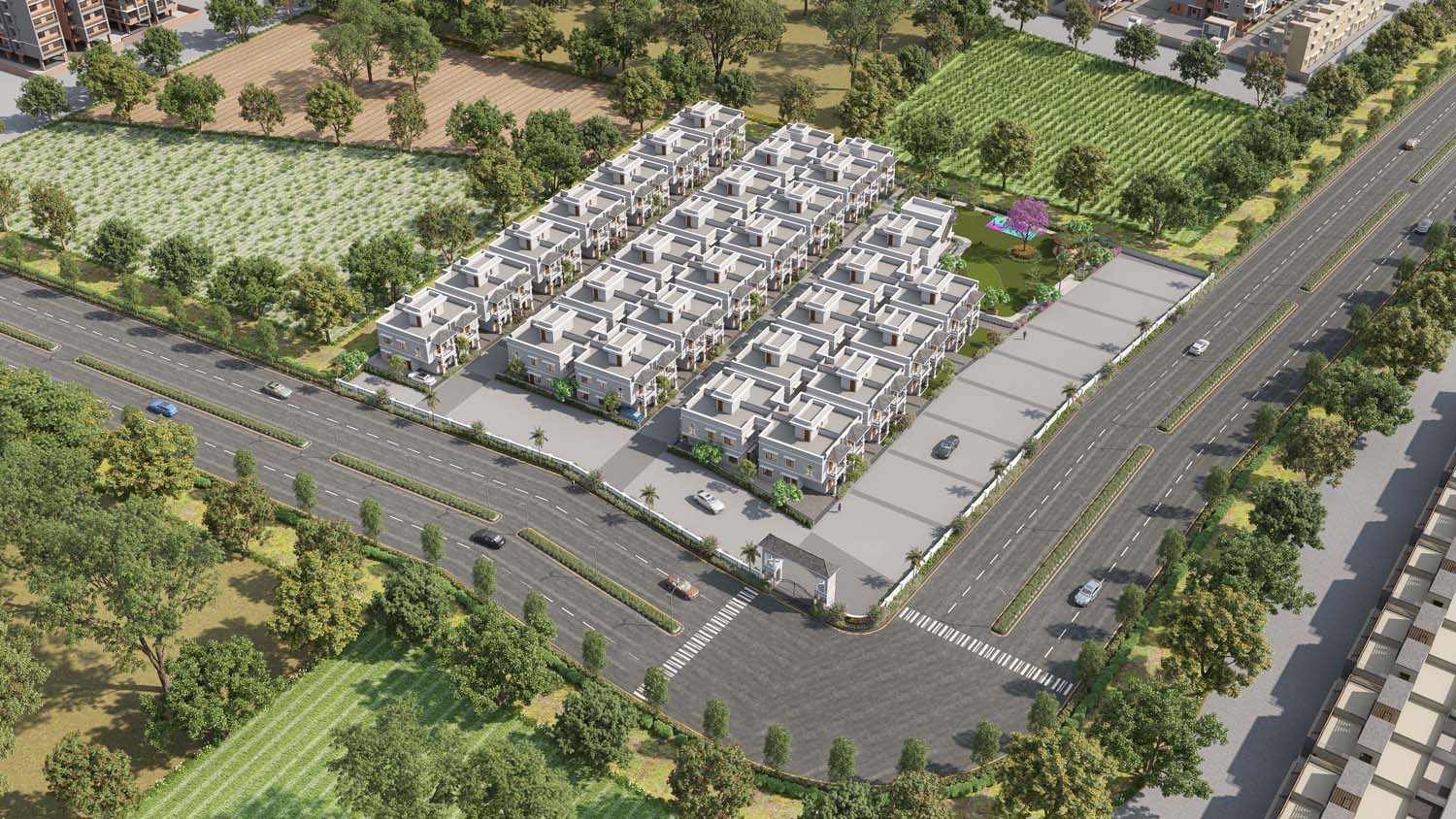 This commercial project near the river and Shamlaji was thoughtfully designed by Shreem Design Architect, with a strong focus on contextual planning, functionality, and architectural clarity. Detailed site research was conducted to understand the surrounding landscape, movement patterns, and environmental conditions before shaping the design approach.